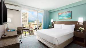 Retreat to our hotel near Waikiki Beach Stay at our hotel in Honolulu, Hawaii and explore everything that the place has to offer. Located in the heart of Waikiki Beach our hotel is a short walk from the beach and top local attractions like Honolulu Zoo. In addition, find many leisure activities nearby, like golfing, surfing and biking. Then return to our hotel in Waikiki, Hawaii, where we offer a state-of-the-art 24-hour fitness center, a calming spa and two refreshing outdoor pools. Take advantage of our group booking offers and special room rates if you want to host a dream Hawaii wedding in Waikiki. Additional hotel amenities include valet parking, onsite laundry and a 9-hole putt putt golf course. At the end of the day, retire to a modern hotel room or suite with free Wi-Fi, an outdoor balcony and modern media offerings. Make our extended stay hotel in Honolulu, Hawaii your tropical oasis